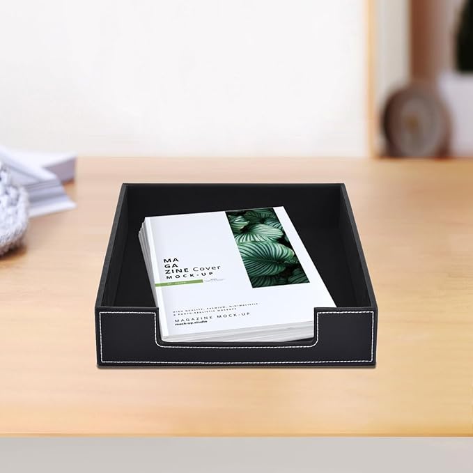 Leather Letter Tray, Office Supplies Desk Organizer for Mail Paper Files Magazines Jewelry Cosmetics,Luxury Letter Holder&Multipurpos Stackable Office Desktop Storage Box,Black
