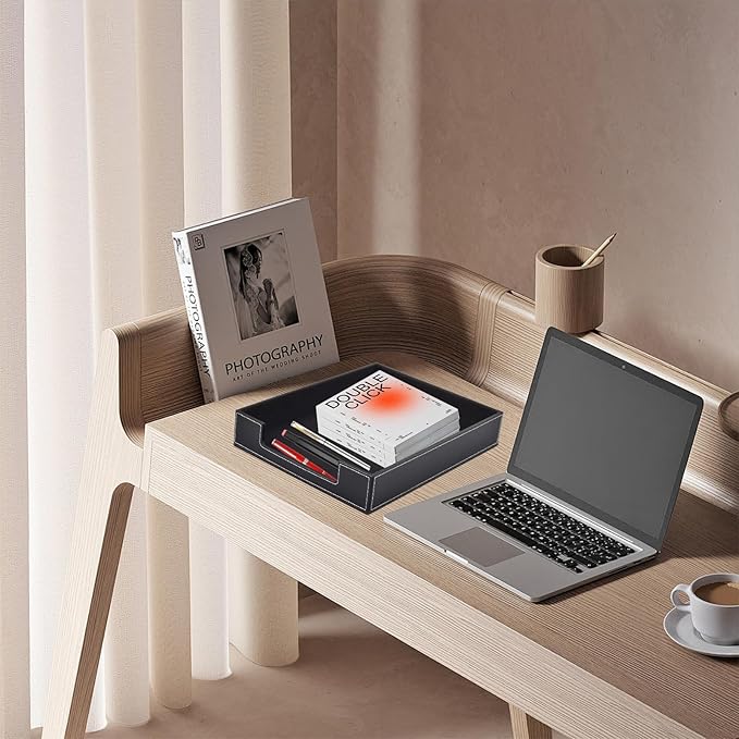 - If you are looking for an attractive desk organizer for your home or work office, this product will certainly fit your needs. This modern, handsome document tray allows you to declutter your desk and surrounding workspace. It offers easy access to letters with the notched front. It's nice to separate the crucial papers from the less significant.
