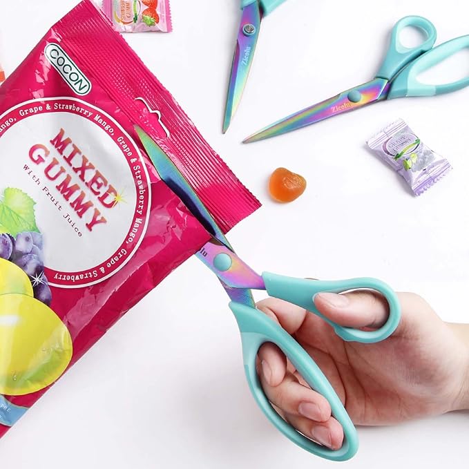 - 3 pair 8.5" Cute Rainbow Scissors in retail packaging, Different Colored Scissors Can be Used in Different Places