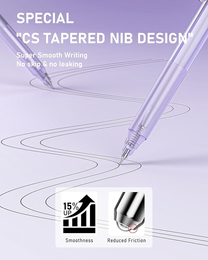 - Smooth & Versatile Nibs: Enjoy buttery-smooth writing with premium cute pens that glide effortlessly. Includes ST, bullet, CS tapered nibs, and a 4mm highlighter tipโideal for notes, journaling, drawing, and highlighting. Built-in spring tips ensure steady ink flow and crisp lines for a smooth, stress-free writing experience