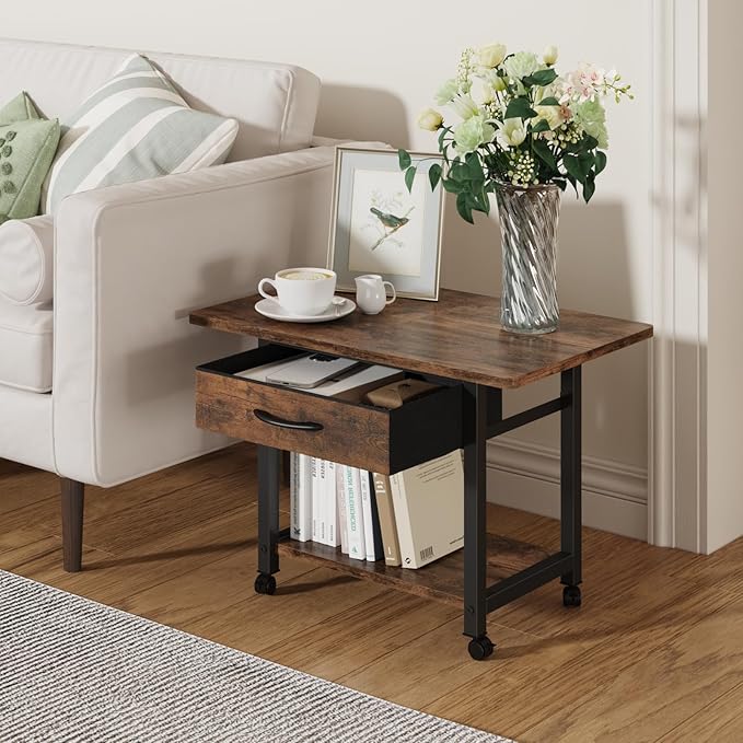 - 【2-Tier Printer Stand with Storage】Printer table with drawer provide a privacy space to place your desk office items. 2-Tier open shelves offer ample storage space for paper reams,file folder,ink cartridge and pen holder etc. Printer stand can ensure a clutter-free workspace and improved organization.