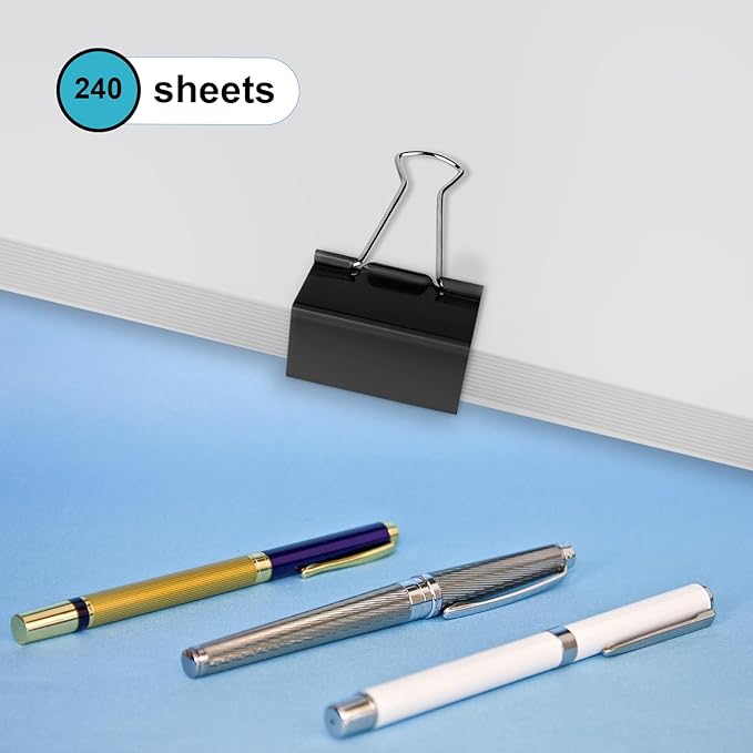 Ufmarine Extra Large Binder Clips Standard 2 inch Length, 1 inch Capacity, 40 Pcs Jumbo Binder Clips for Office