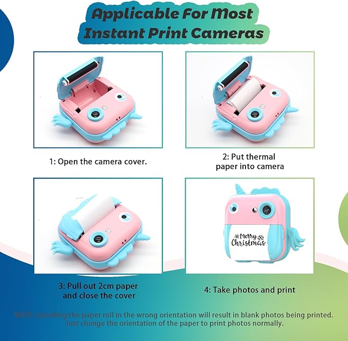 - π§»glossy printer paper Rolls: Package Include 10 rolls of instant camera white refill print thermal paper, each roll of thermal paper is about 2.2in Γ 15ft and can print about 50-60 photos, so you can print photos as many as you wantοΌ