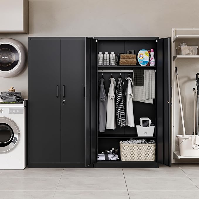 Letaya Metal Wardrobe Cabinets with Lock,Clothing Locker 72" X 36" X 18" Storage Cabinets for Home Room,Fire Department, School, Employee,Gym,Government (Black)