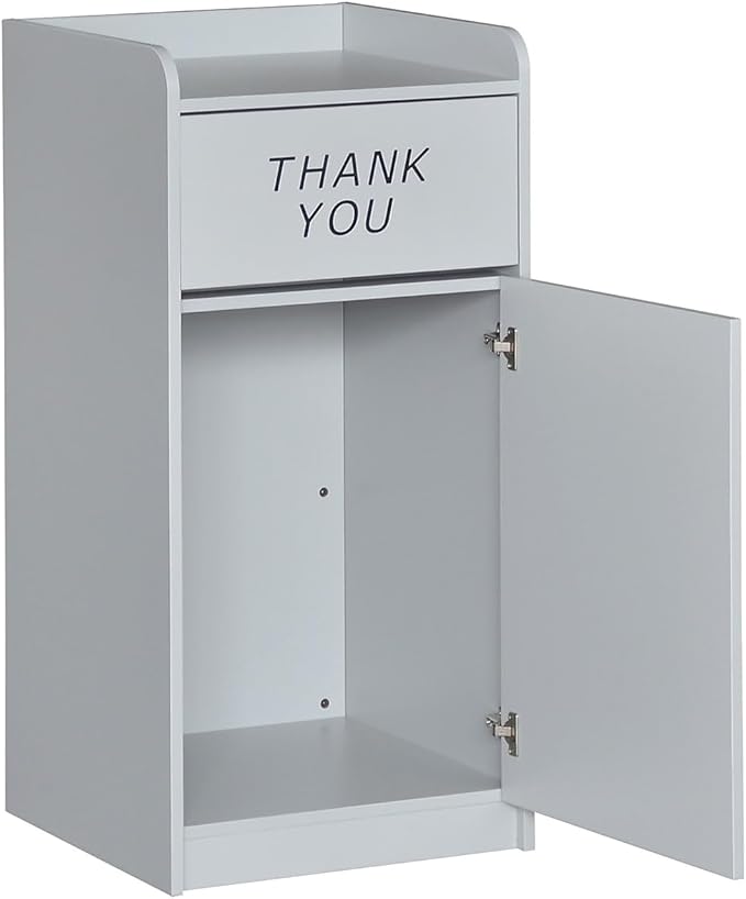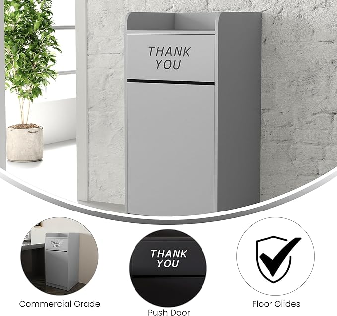 - Lets talk trash, or at least the handling of it. Leftover debris from meals clutters up your space and can leave a lingering odor. This large capacity trash can will rid you of the eyesore and enhance the entryway of your establishment.
