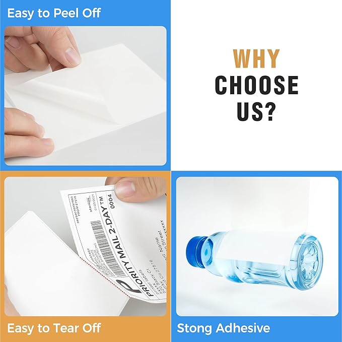 - STRONG ADHESIVE: The 4x6 labels shipping labels offer a strong bond to envelopes, boxes, cards, and glass, ensuring labels stay securely in place. Made from ultra-white paper, they provide crisp, dark prints for easy reading and reliable scanning