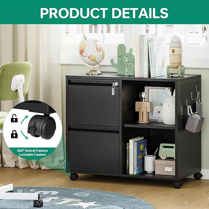 - 『Multifunctional Filing Cabinet』Lateral filing cabinet with open storage spaces, organization and storage drawers,holds printer stand and office craft storage,side hole panel design is beautiful and can hang items,modern delicate appearance ornamental to your office & home.