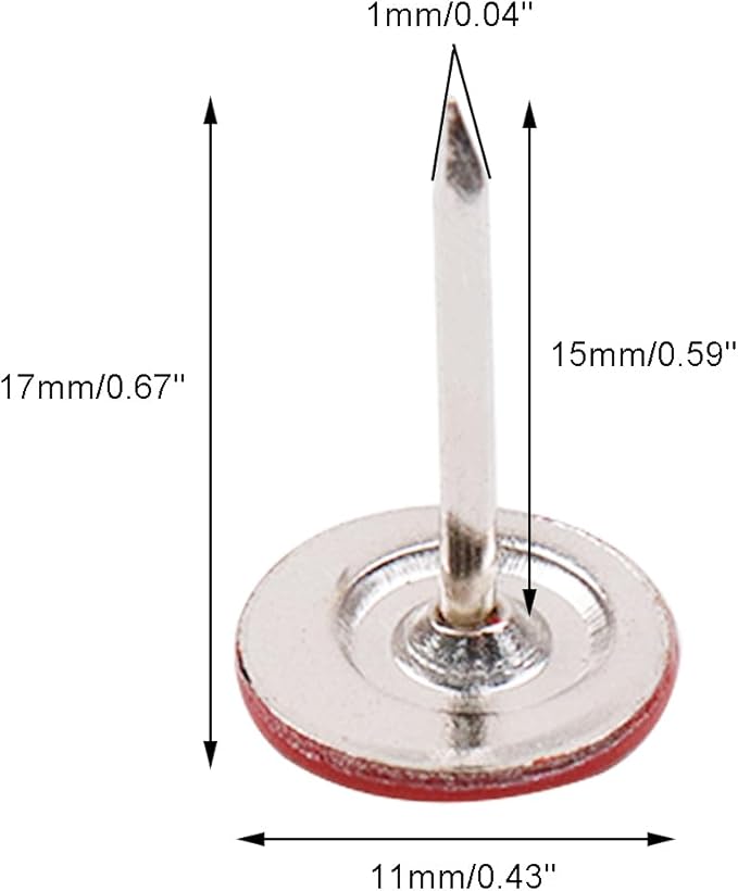 - PACKAGE CONTENT: 100Pcs red flat head upholstery tacks, enough quantity to meet your daily needs. Total Size:11mm*17mm/ 0.43" * 0.67"(Dia.xH), elegant for furniture decoration