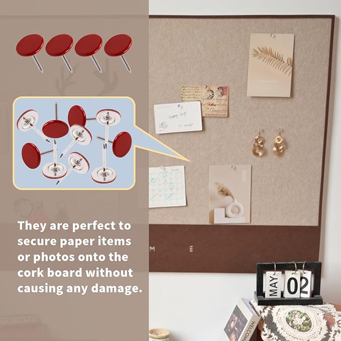 - QUALITY SERVICE: The upholstery tack is ideal for attaching paper items or photos to the cork board. If you have any questions about flat head thumb tacks, please feel free to contact us and we will try our best to help you