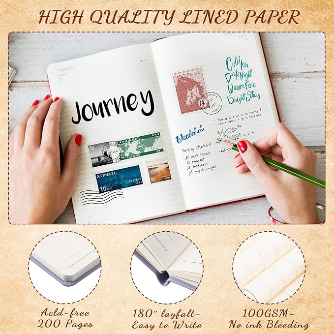 - 180 Degrees Lay Flat: our small notebook can be laid flat at 180 degrees after opening, convenient for both left and right hand writing, improving efficiency, which is also convenient for you to read; When you're done, you can close it tightly with an elastic band, so the paper can stay flat and will not curl