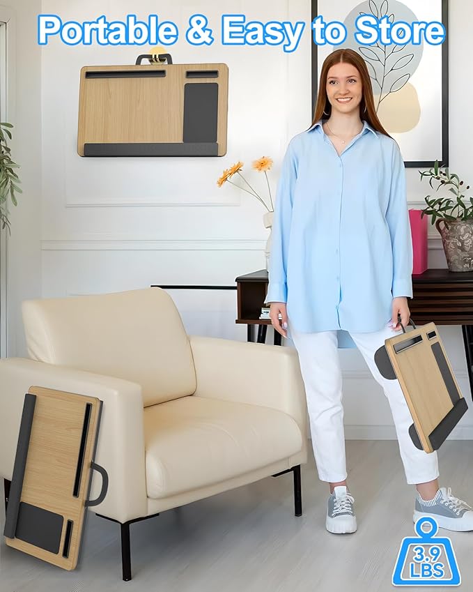 Laptop Lap Desk, Portable Large Laptop Desk for Bed, Up to 17 in Lap Table with Wrist Rest, Mouse Pad, Tablet Phone Slot, Portable Handle, Cushion (Light Brown)