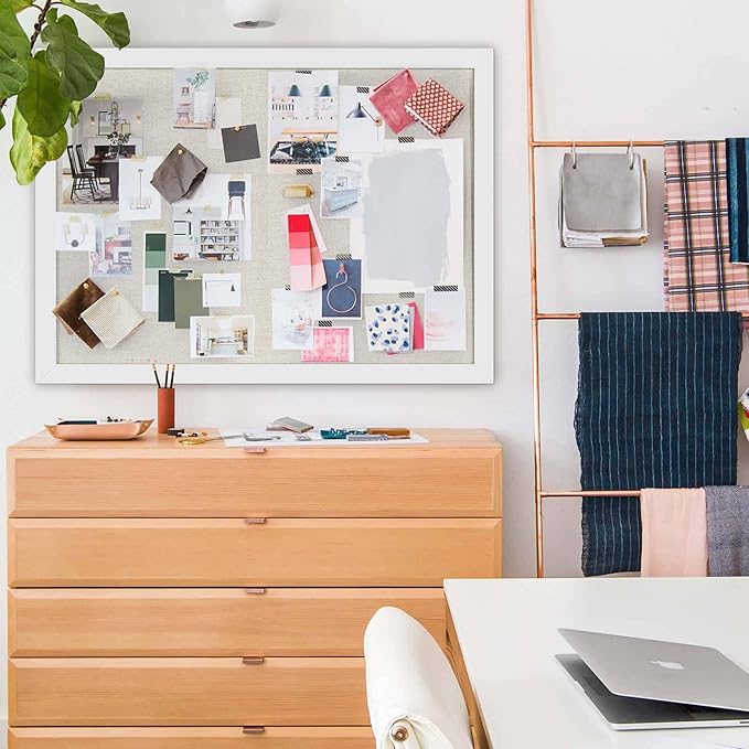 Cork Board Bulletin Board 18" x 24", Large Linen Corkboards with Frame for Walls, Cute Picture Display Pin Board Vision Board for Room School Office Bedroom 20 Pushpins Vintage White