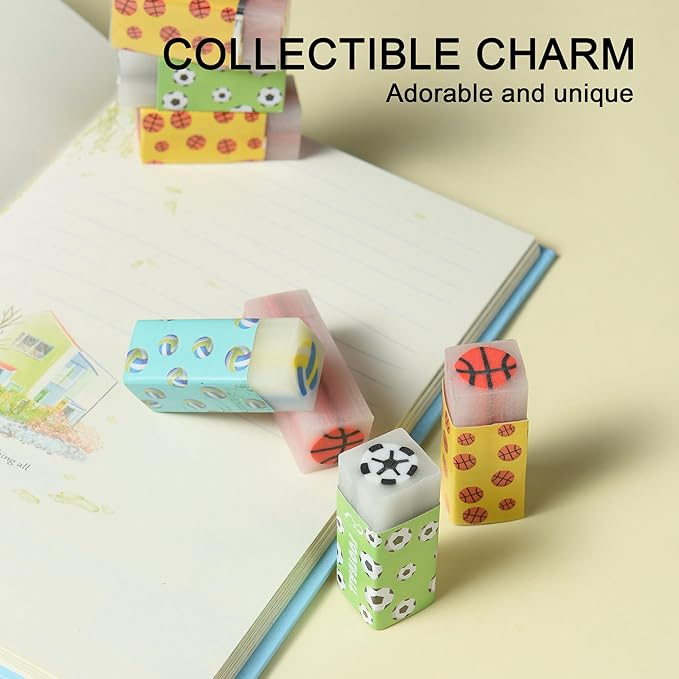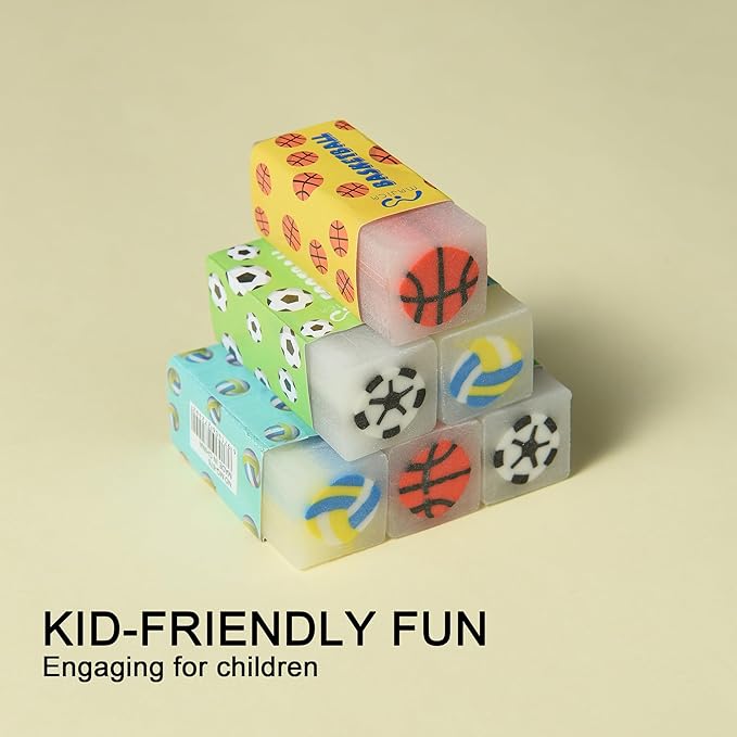 - Score big with our 18Pcs Cute Sports Ball Erasers for Kids Bulk – a slam dunk for young athletes!