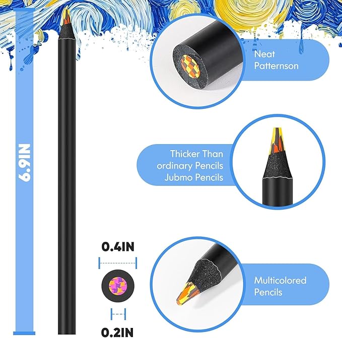 - Vibrant 8 Multicolor Pencils: Our colored pencils are different from others, there are 8 vibrant assorted colors in Gift box packed while others only have one color! Immerse yourself in the magic of 8 rainbow pencils, where each stroke reveals a symphony of captivating colors. Infused with over 3 hues, these pencils offer an element of surprise with every line you draw. Transform your artwork with a rich array of shades, catering to a diverse range of creative needs and preferences.