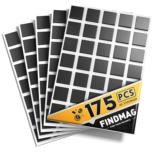 FINDMAG Magnetic Tape, 175 Pcs Square Magnets with Adhesive Backing, Flexible Magnetic Tape for Crafts, Magnetic Strip for DIY Projects, Hanging & Organizing Light Objects (Each 20x20x2mm)