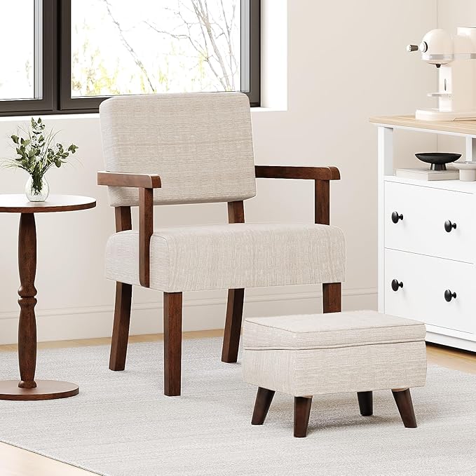 - 【Decorative Ottoman for Occasions】 High resilience foam wrapped in textured natural linen, modern style and simple appearance has a touch of casual. Wood legs with foot pads is quiet when moving, and can avoid leaving scratches on floor. Foot stool choices strive to stand out in any various occasion, such as bedroom, living room, study, lounge, balcony, dorm, entryway, hallway, etc.