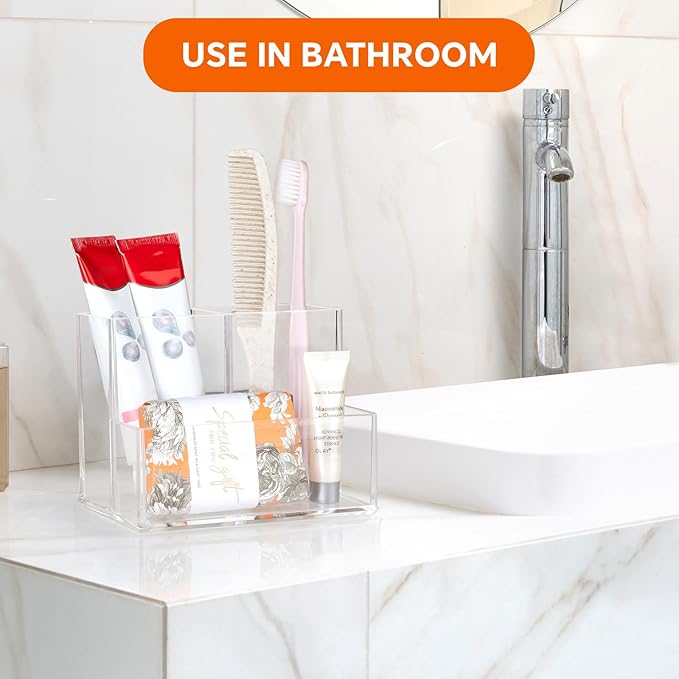 Pen Holder for Desk, Clear Acrylic Pencil Holder for Desk, Marker Holder with 3 Compartments, Pencil Organizer for Home, Office, Classroom, Bathroom