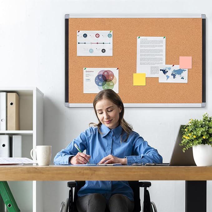 - Light Weight: 36 inch cork board with 36 push pins, The frame is surrounded by black/silver lightweight aluminum, covered with four ABS plastic corners, lightweight and sturdy, guaranteed not to warp, more beautiful and fashionable, ideal for home or office