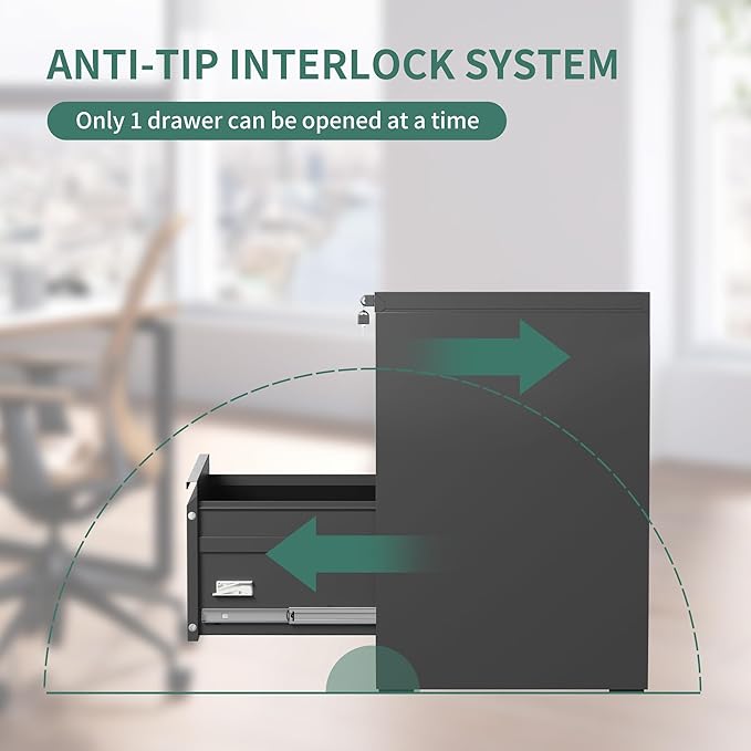 - 【SMOOTH DRAWER】This 2 drawer file cabinet with lock has been improved, the drawer stiffness, drawer not closing correctly and drawer misalignment have been improved, making the drawer of the black file cabinet can be drawn on the slides to slide correctly, smooth pulling and smoother edges, and will not fall over randomly when the vertical file cabinet 2 drawer is fully opened.