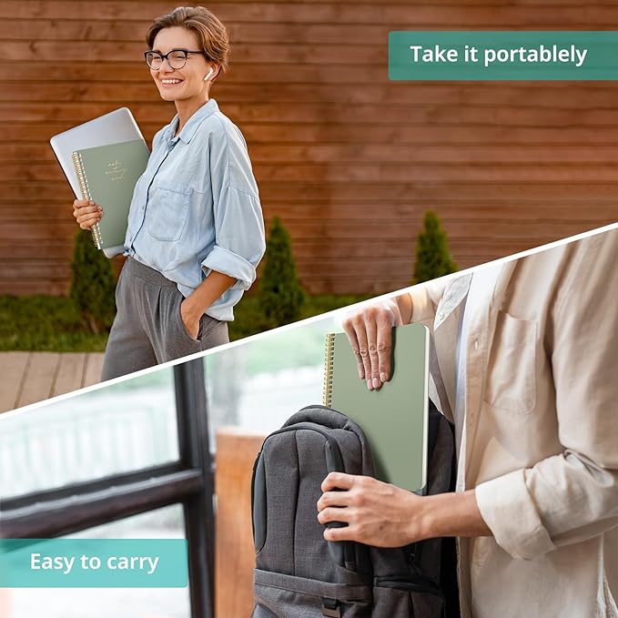 Taja Meeting Notebook for Work Organization - Work notebook with action items, Meeting Minutes Planner Notebook, Perfect Office Supplies for Men & Women - Green