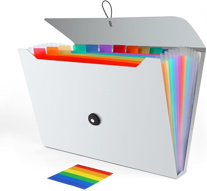- 【COLORFUL DESIGN】Our expandable file folder features rainbow-colored inner pages and small colored labels for easy classification, making it both functional and visually appealing