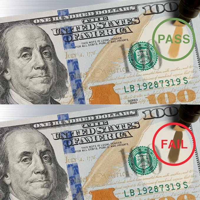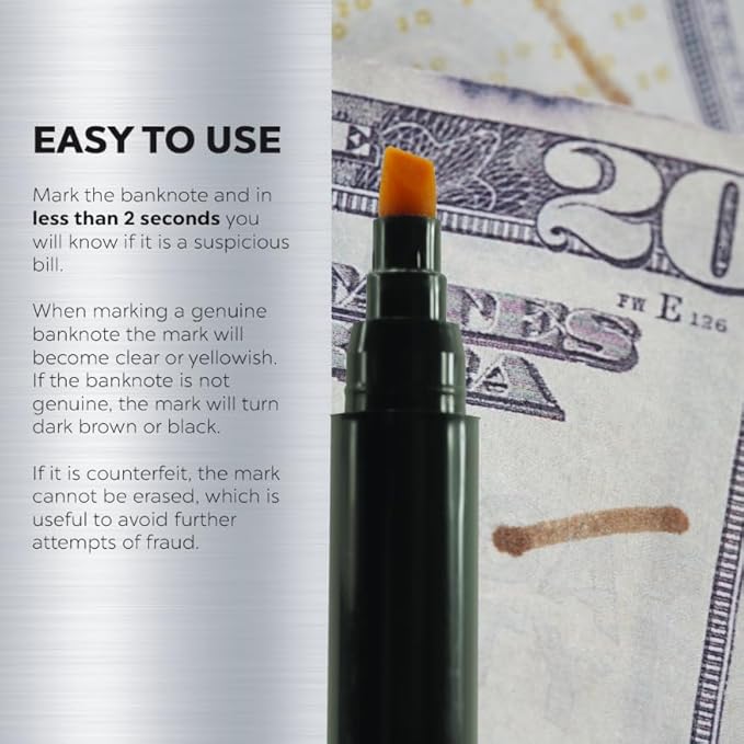- Instant Verification Pens: The 5-pack counterfeit bill detector pens provide immediate verification in just 2 seconds, ensuring you can quickly check currency authenticity anywhere.