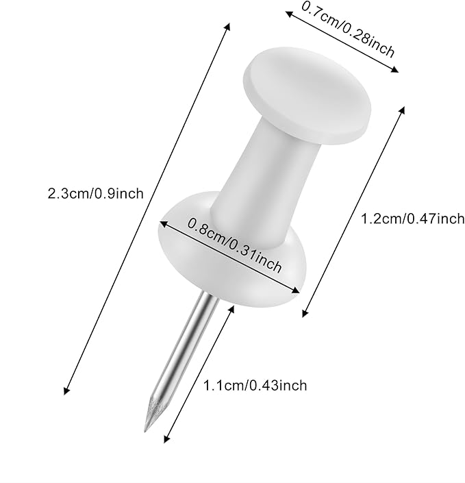 - Sleek White Elegance: Versatile and essential, our white push pins seamlessly blend into any decor, offering a sleek and classy touch to your bulletin boards and walls. Whether you're pinning important notices or adorning your space with photos, these thumb tacks provide functionality and style.