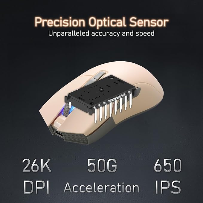 - PixArt PAW 3395 Optical Sensor ⚡️ adjustable DPI up to 26,000 dpi resolution. You can promptly adjust the moving speed for a fast response during gaming.