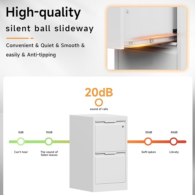 - 🔖【SMOOTH MUTE SLIDE RAILS】: Our metal file cabinets are made with full retractable mute slide rails, open and close smoothly, easy to pick up and put down folders without noise. Perfect for office, home and school use. And the vertical appearance design can maximize the effective use of space, so that your space is not wasted!