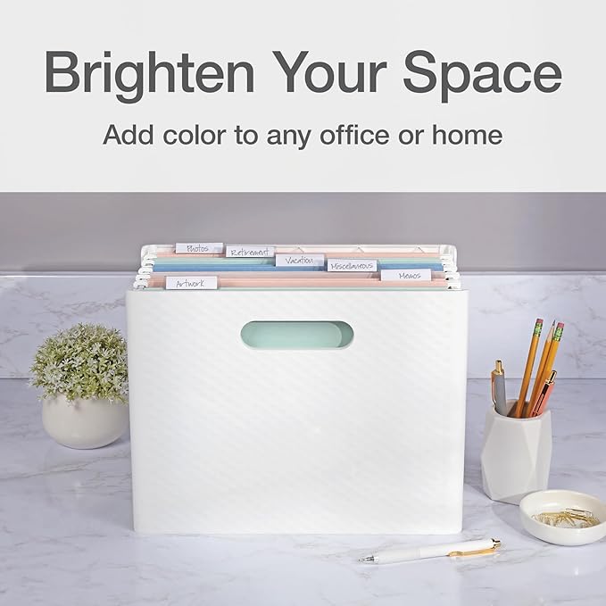 - Work faster and smarter; color hanging folders in calming pastels (khaki, peach, light blue and light green) let you spot the right file through color association