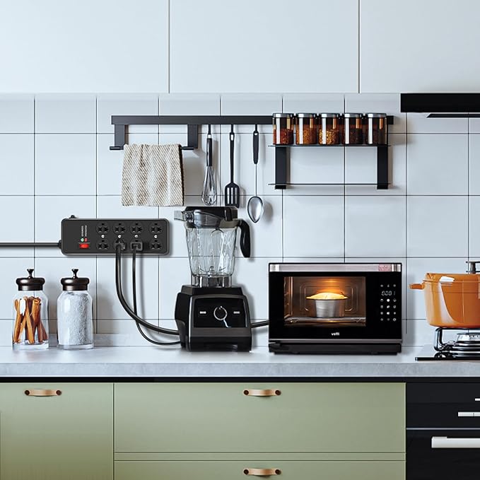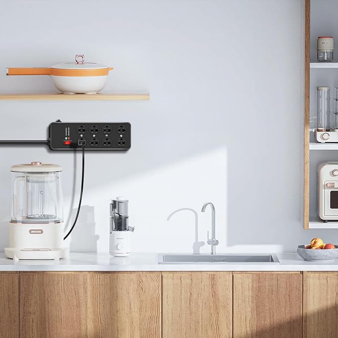 - MULTI-OUTLET SURGE PROTECTOR POWER STRIP:Features 4800J surge protector and a 20A circuit breaker, providing a reliable power supply for devices while preventing short circuits, overcurrent, overheating, and overvoltage. If the current exceeds 20A, the circuit breaker automatically cuts off power to prevent damage. After powering off, simply reset by turning off the power and pressing the reset switch.