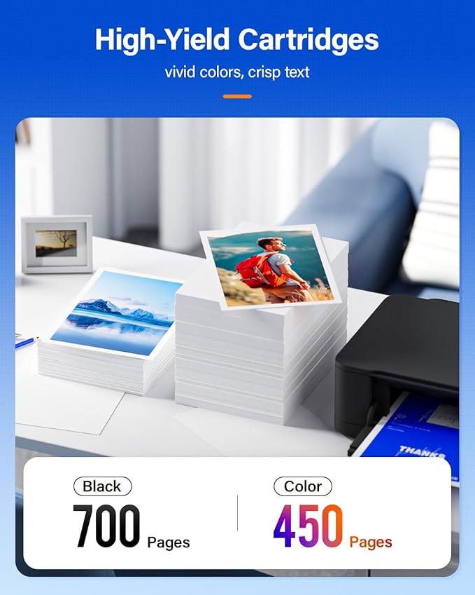 - Yield & Version: 700 pages for Black and 450 pages Color ink cartridge (A4, 5% Coverage), with High Yield Version 64XL
