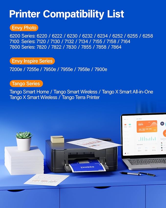 - Compatible Printer: Compatible for HP Envy Photo 7855 7858 7155 7158 7164 7120 7100 7800 6255 6252, ENVY Inspire Series: 7200e 7255e 7900e 7950e 7955e 7958e,Tango Series