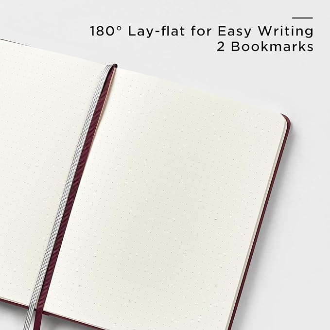 - 180° LAY-FLAT DESIGN: The lay-flat design allows for easy writing and ensures that you can utilize every page efficiently. Journaling, note-taking and planning has never been easier! 2 Bookmarks to help you find important content faster