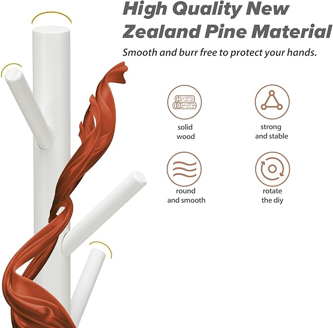 - 【Easy Assembly Without Tools】Our coat tree with screw-in design can be easily assembled in minutes without any tools, saving your time.Also, burr free solid wood quality friendly protects your hands.
