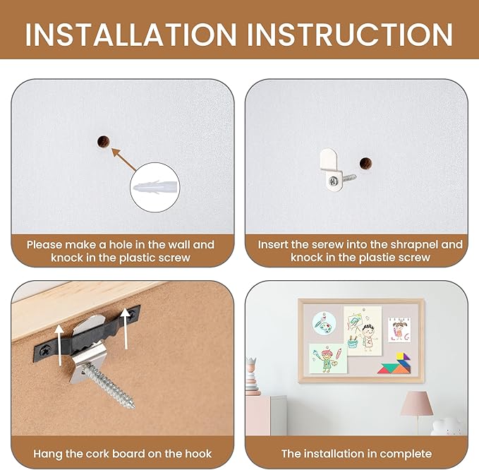 - Easy Installation: The Pin board comes with 10 pushpins and basic wall mounting hardware. You can use the screws provided to install the corkboard, and its flexible installation options allow for horizontal or vertical mounting to suit your space.