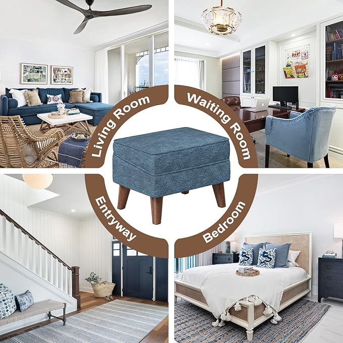Small Footstool Ottoman with Storage, Ottoman Foot Rest, Modern Foot Stool with Adjustable Lid and Sturdy Wood Legs for Living Room, Bedroom, Couch, Enterway, Blue