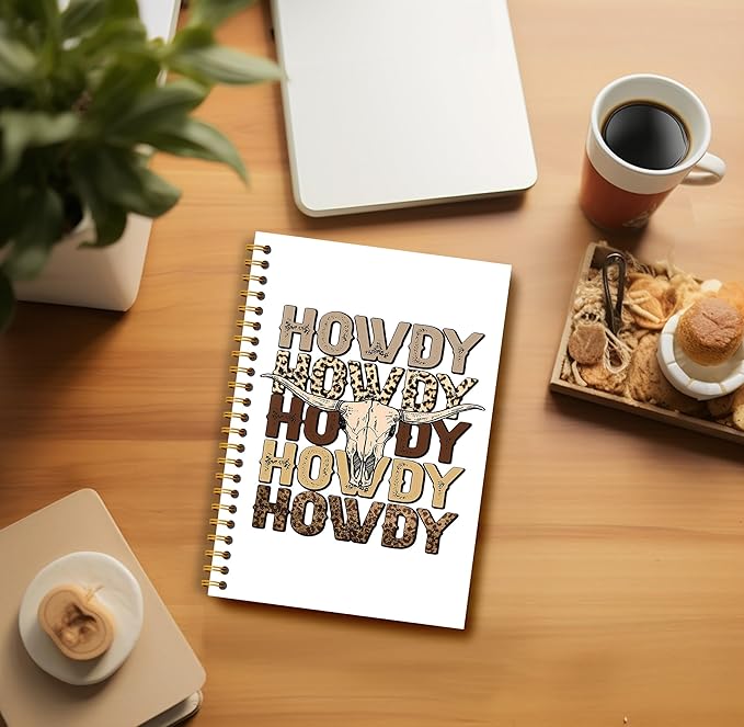 Howdy Western Notebook Journal 164 Pages - Western Gifts for Women Cowboy Cowgirl, Western Cool Notebook, College School Supplies, 5.5×8.3 Notebook Spiral Bound