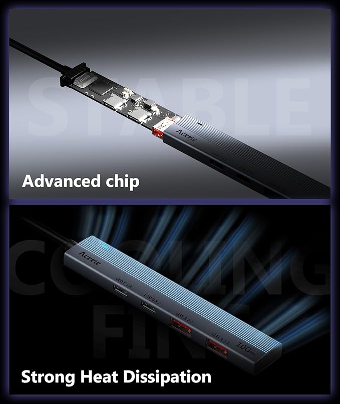 - 【4 Ports USB C Hub Adapter】Aceele USB C 3.2 Hub helps expand a computer's USB-C port to 2 USB-A 3.2 and 2 USB-C 3.2 ports, which is perfectly connect all your USB peripherals in your daily work.📵NOTE: All Ports Not Support Charging/Monitor(video output).