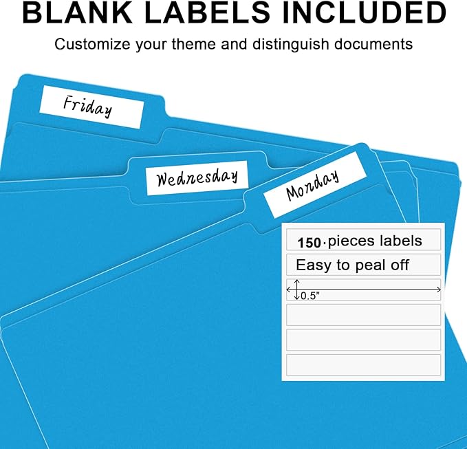 - PACKAGE INCLUDED: This bulk pack includes 150 letter size file folders (50 of each position) and 150 blank labels, ideal for any home, office, or school project, providing you with plenty of storage space for all of your important documents