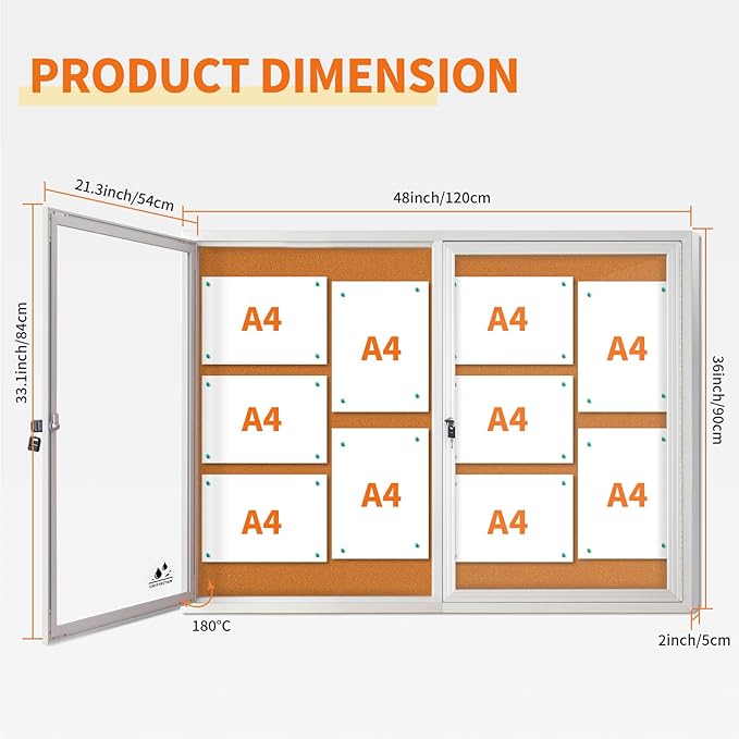 - Self-Healing Cork: Crafted from high-quality dense cork, our enclosed bulletin board boasts exceptional self-healing abilities and repair-ability. Experience the convenience of automatic recovery from pin or tack holes, ensuring a consistently smooth and neat surface. Bid farewell to unsightly pinholes and elevate your display with a professional finish.