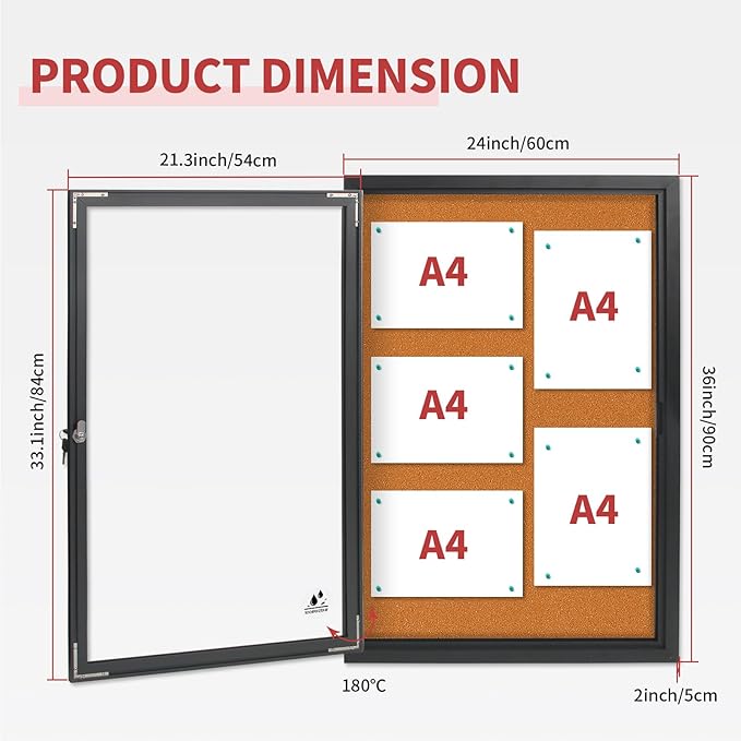 - Self-Healing Enclosed Bulletin Board with Lockable Glass Doors: Made of premium dense cork, this enclosed cork board offers self-healing pin board performance. Ideal for offices, schools, or homes needing a durable, smooth bulletin board that stays flawless.