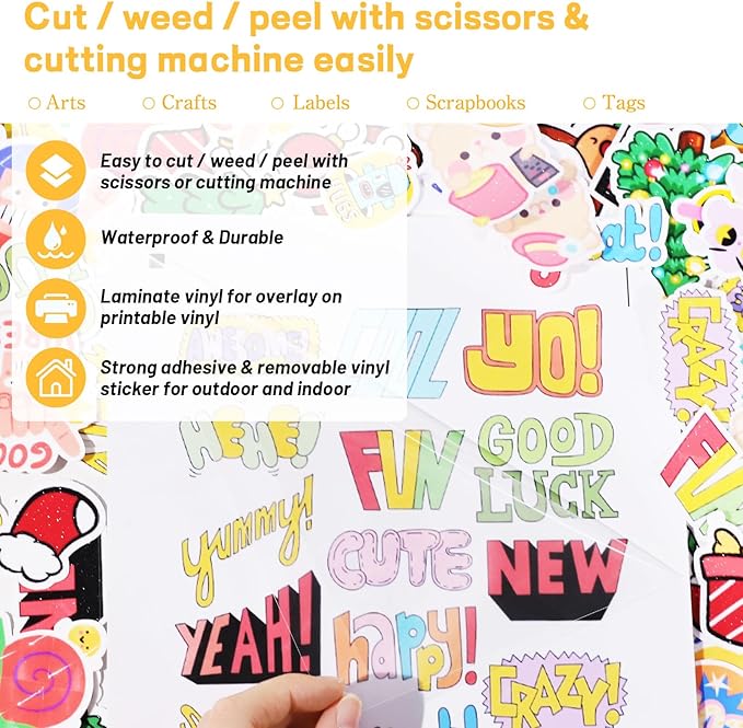- Ideal for DIY Projects & Labeling - Our laminate vinyl sticker paper is perfect for crafting DIY stickers, labels, and personalized decals for home decor, scrapbooks, notebooks, and more. laminate sheet adheres to smooth, flat surfaces like metal, plastic, glass, cardboard, and paper—an excellent lamentation sticker sheets for hobbyists and professionals alike.