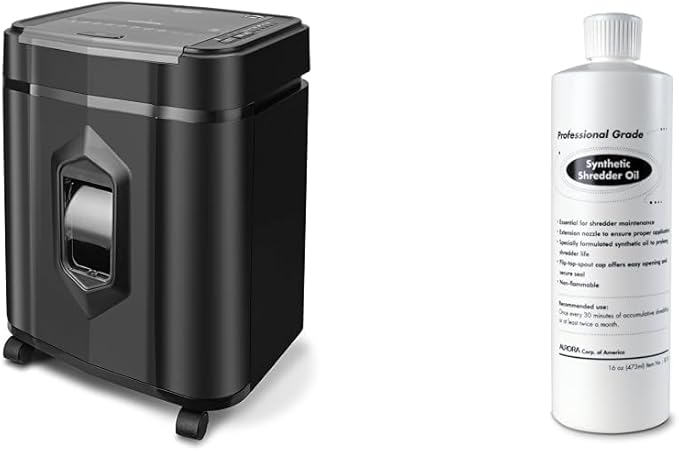 Aurora Professional Grade AU125MA 120-Sheet Auto Feed & SL16 Professional Grade Synthetic Shredder Oil, 16 Oz Flip-Top Leak Proof Bottle, Synthetic Shredder Oil 16 oz. Bottle