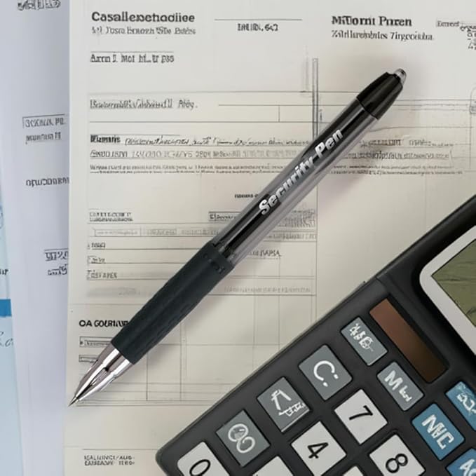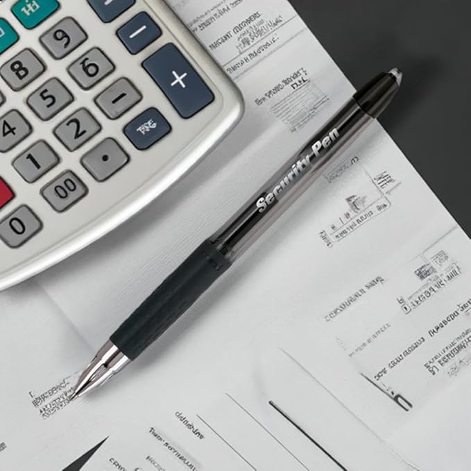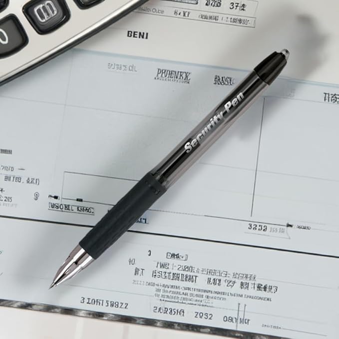 - Security Pen uses special gel ink that binds to the fibers of checks or other important documents