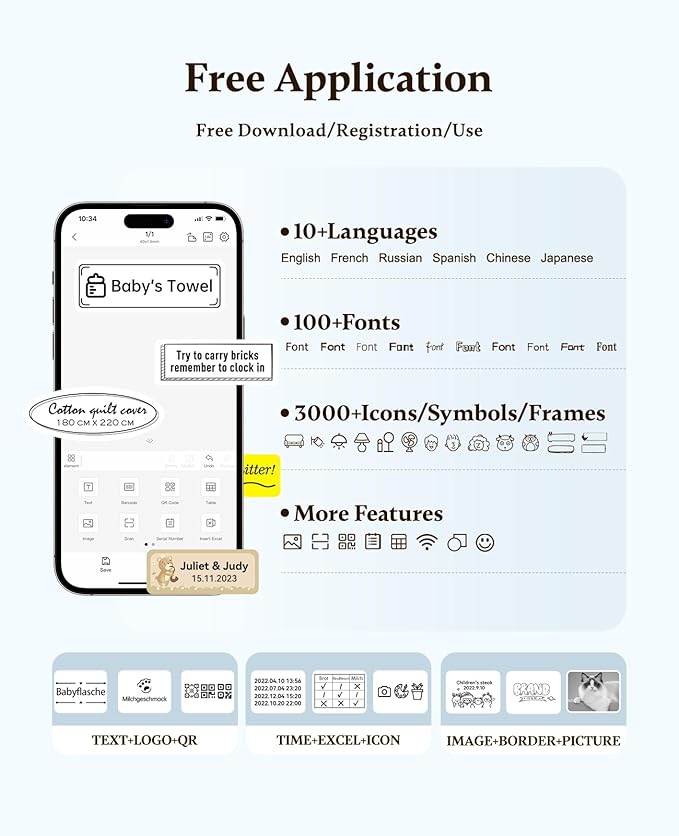 - 【Powerful Functions】It is support to print various texts, numbers, graphics, symbols, logos, barcodes, QR codes,etc. And intelligent recognition of voices and pictures.