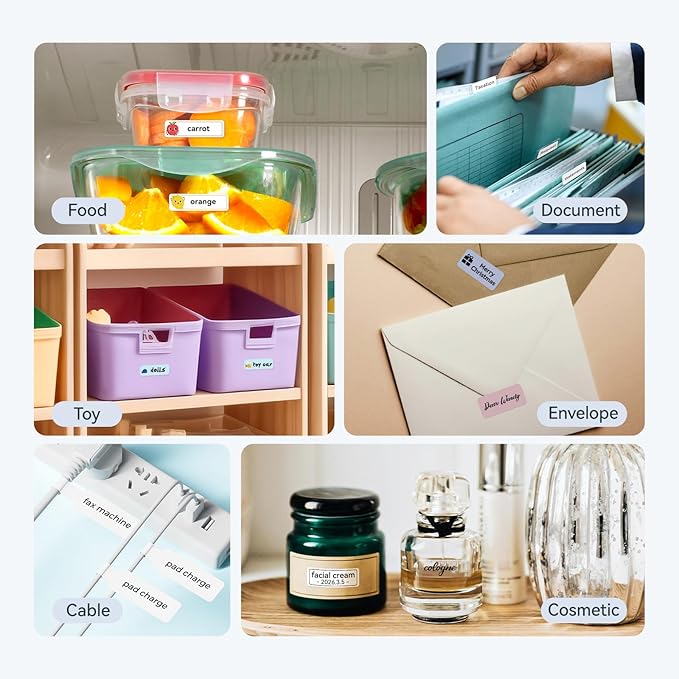 - Wide Application: The label maker printing width up to 15mm with a variety of styles of label tapes, such as 12X40mm, 14x30mm, 15x30mm and more, widely used in home storage and organization, school and office file classification, and small business, such as jar stickers, food date, cosmetics, personal items, barcodes, name tags, cable identification, price tags, jewelry labels, etc. Itβs also the perfect back-to-school supplies and home helper