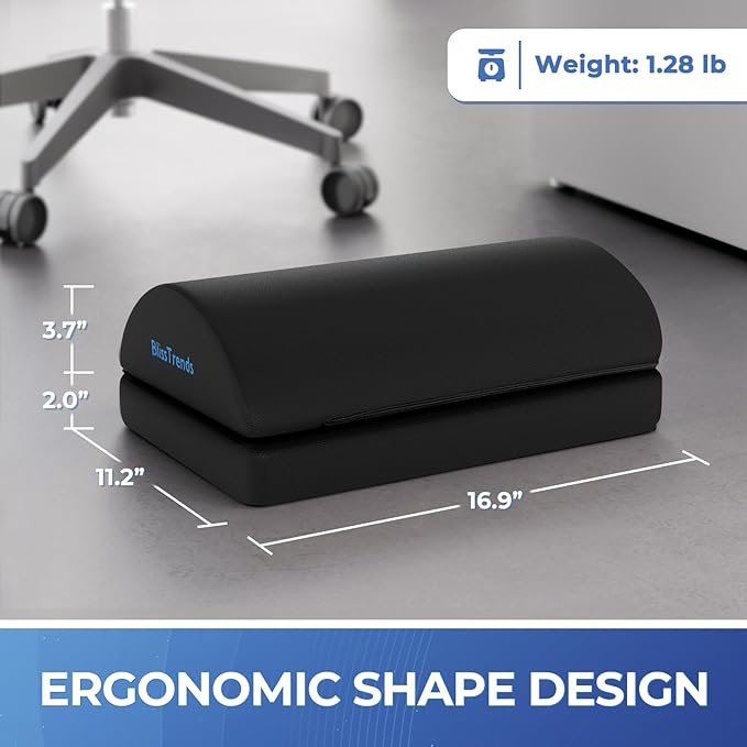 - [Comfortable Experience]The BlissTrends foot rest has two layers: the lower layer measures 16.9"*11.2"*2.0", and the upper layer is 3.7" thick. The foot stool is ergonomically designed with sufficient height and curvature to better relieve the pressure on your limbs and discomfort when sitting for long periods of time