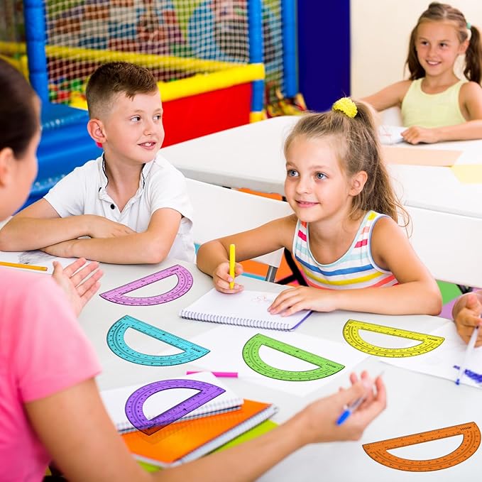 - Clear and Good Quality: the protractor made of good quality plastic; Multi colors allow you see the words, letters, figures on page through the protractor