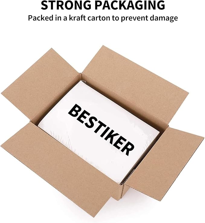 - ✅[ Customizable Adhesive Paper ] Full sheet label paper white gives you the freedom to design stickers in different sizes and shapes. Great for DIY personalized stickers for car bumpers, glasses, bottles, Laptops, laptops, and more. Adhere to metal, plastic, glass, tin, paper, cardboard, corrugated boxes, envelopes, plastic bags, and more.